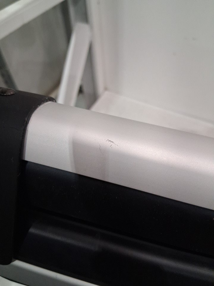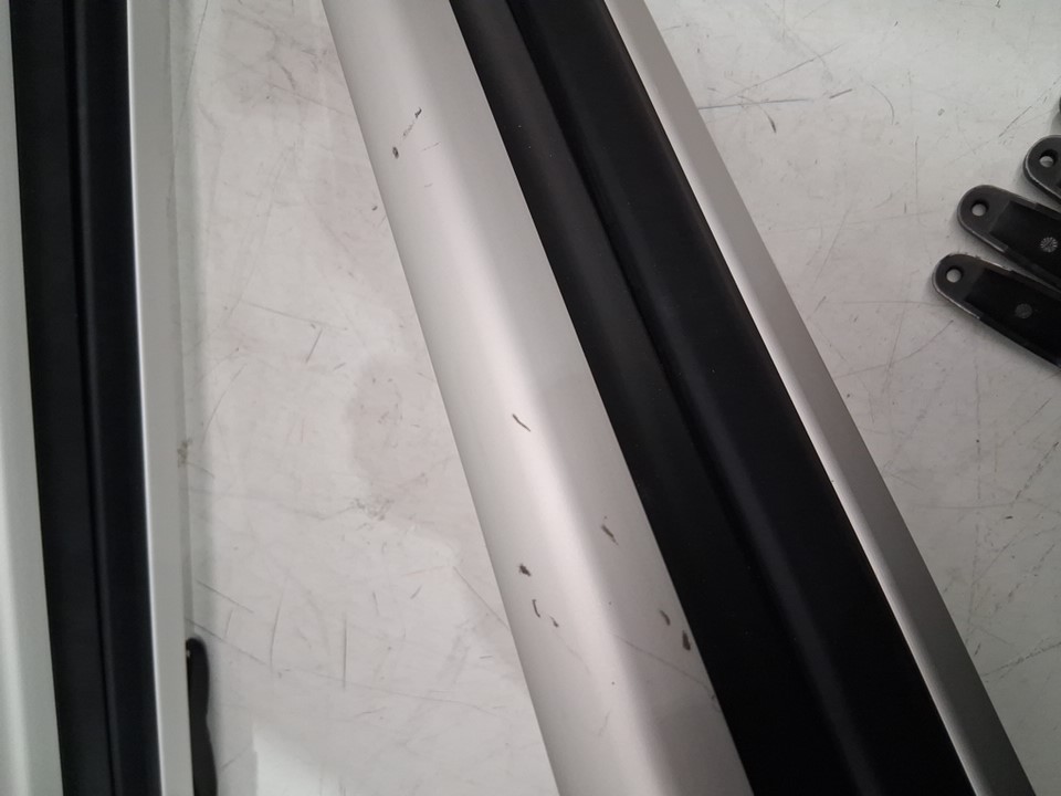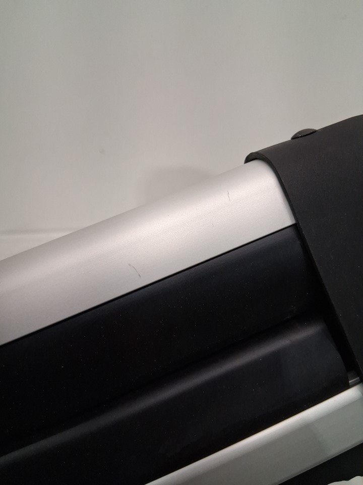 There are some scuff marks on the snowboard/ski carrier and there are water droplet stains from previous use.