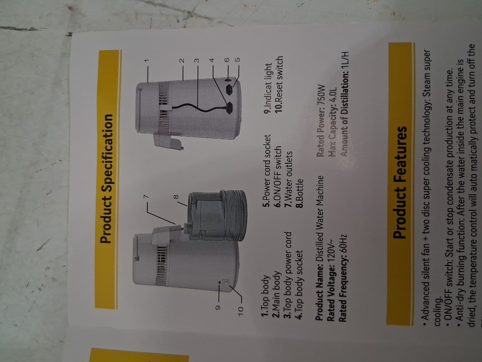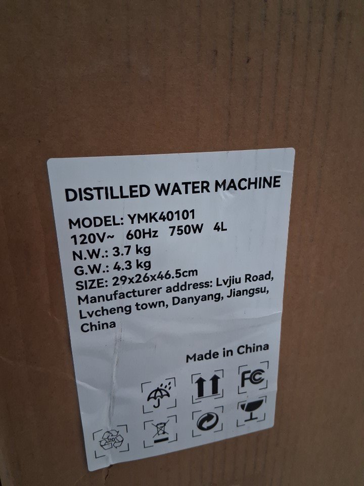 WATER DISTILLER WITH PLASTIC CONTAINER - 750W - 4L - WHITE (MODEL: YMK40101)