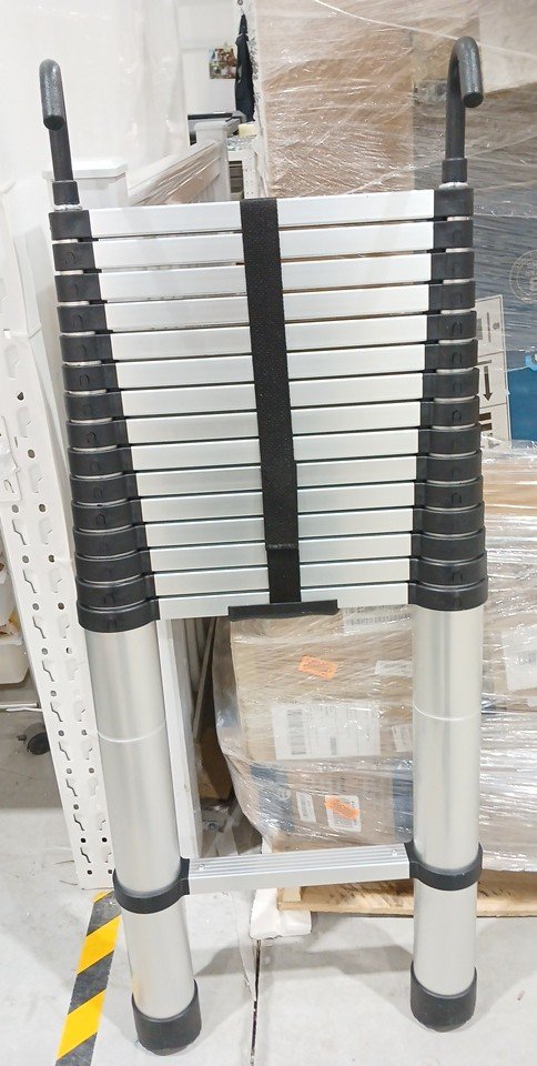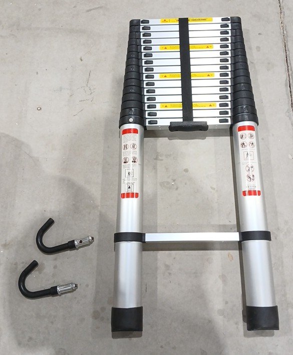 Heavy Duty Aluminum Retractable Telescoping Extension Ladder with Detachable Hooks and Non-Slip Feet - 12.5FT - 350lbs cap - Silver