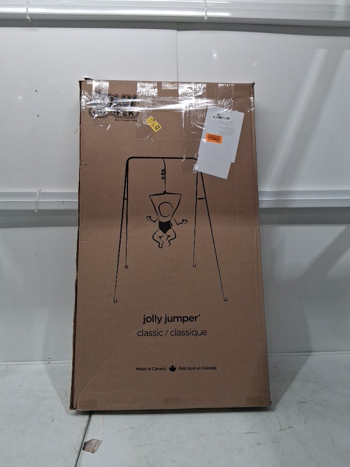 Jolly Jumper Classic Portable Baby Exerciser With Grey Fabric Saddle - 28 LBS Max - White/Grey (Model: 109)