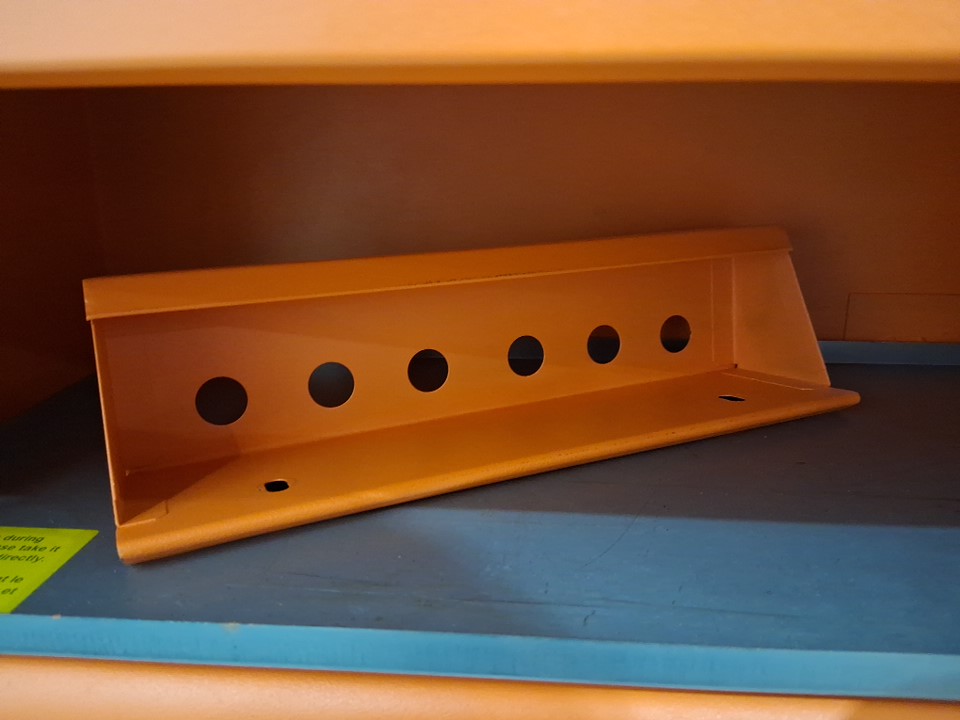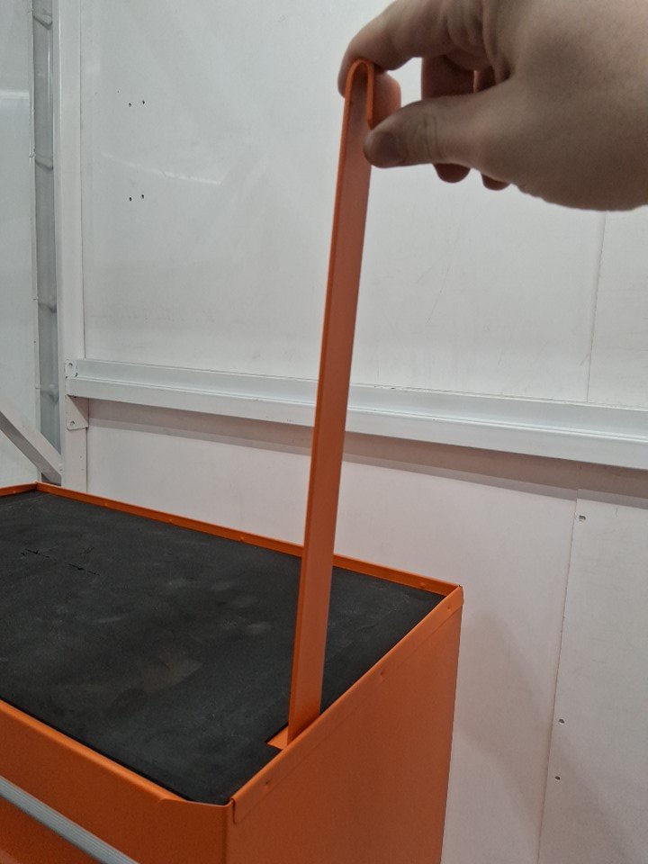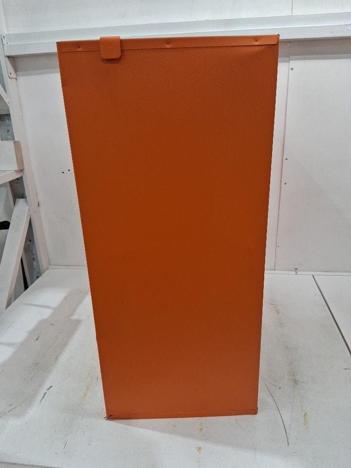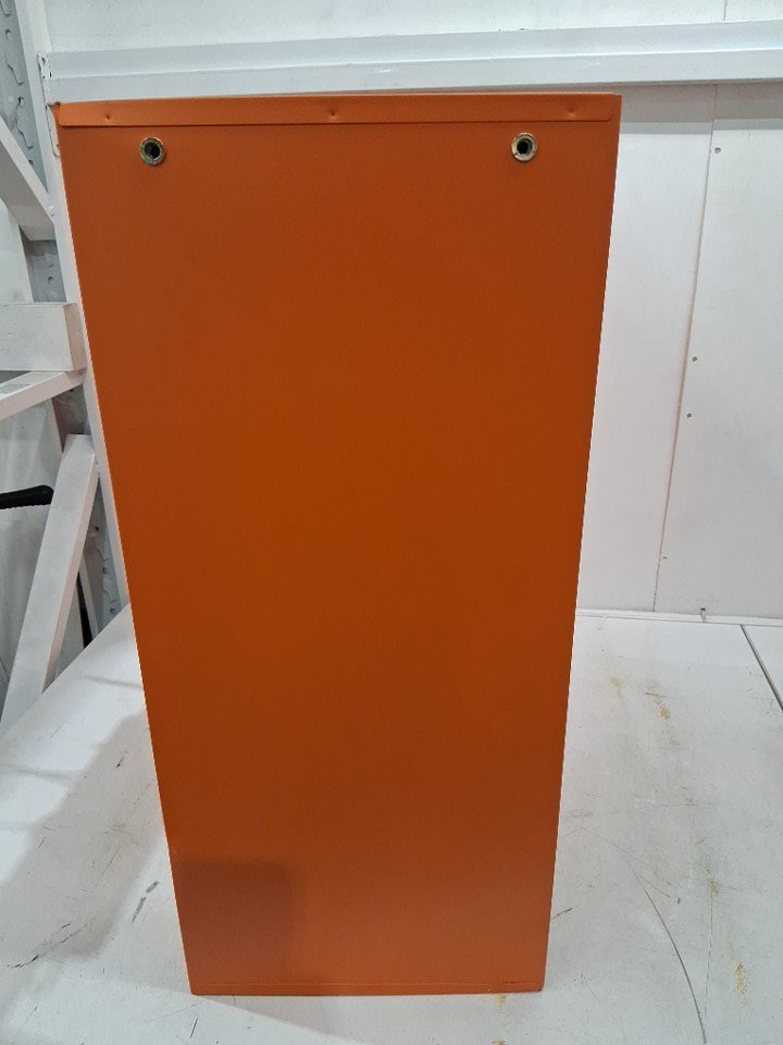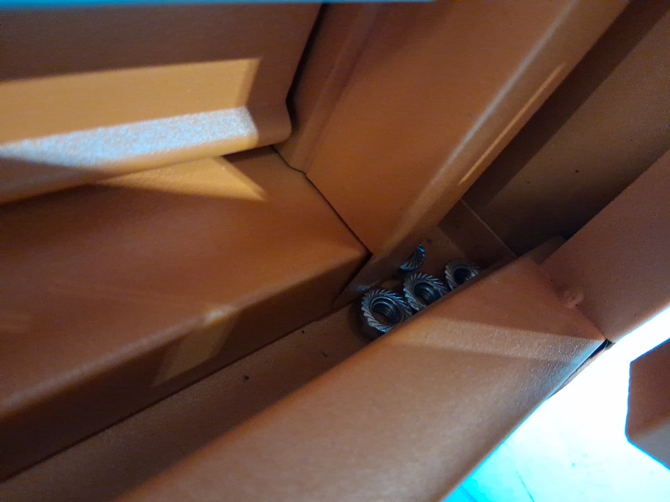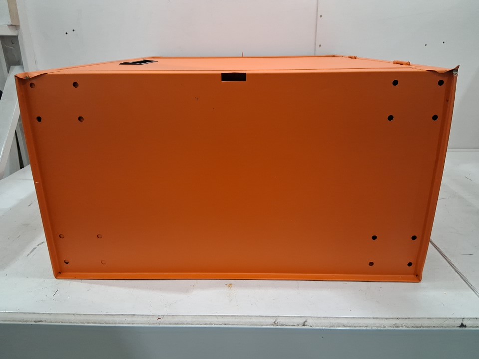 The foam pads on the top of the main cabinet and inside of the cabinet's drawer have received some damage due to shipping/handling, there is also a small dent near the top of the right side of the cabinet - see photos. Outside of this damage all parts appear to be in good condition with no obvious signs of use, though customer may need to provide some extra hardware themselves (screws, etc) in order to attach the wheels, as some appears to have gone missing during shipping.