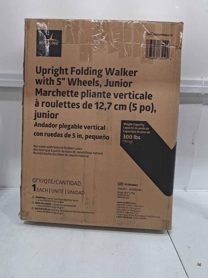 medline upright folding walker - 300lbs capacity - 38.7" to 45.6" x 18" - silver
