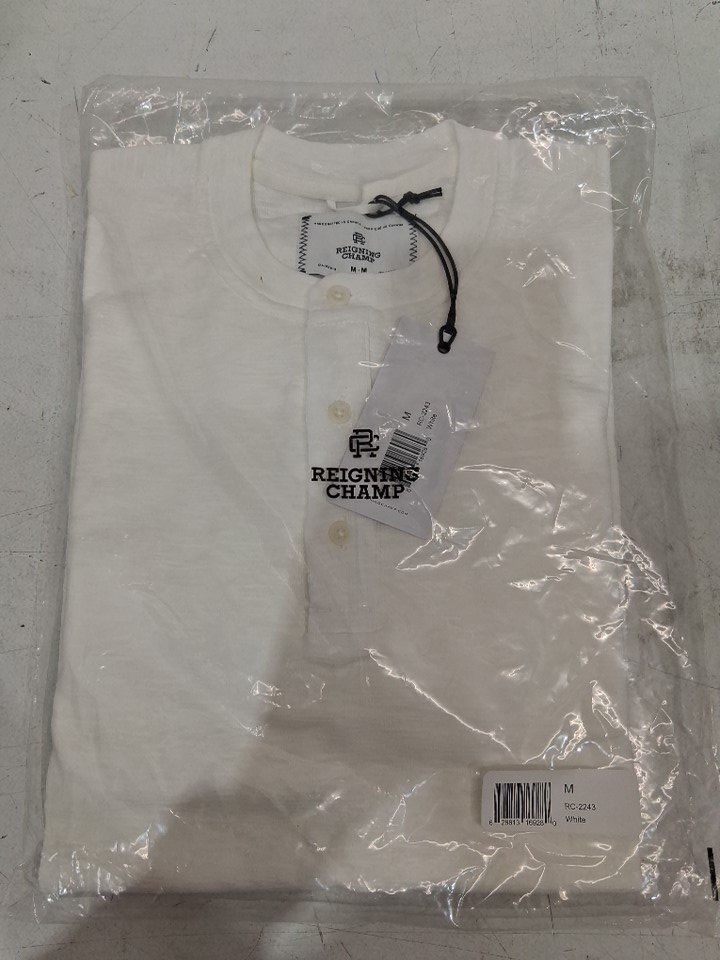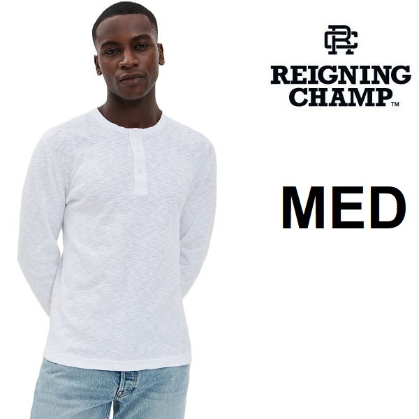 MEN'S Reigning Champ 1X1 Slub Henley Long Sleeve SHIRT - medium - WHITE (MODEL: rc-2243)