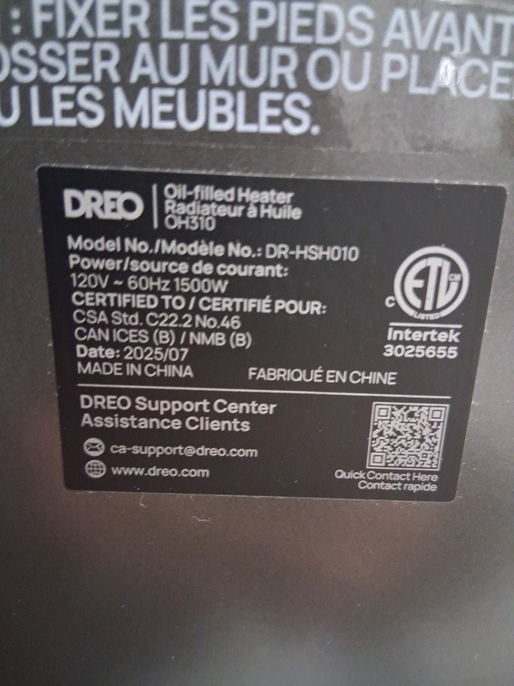 DREO Oil Filled Radiator Electric Radiant Heater with remote - 1500W - black (model: oh310/dr-hsh010)