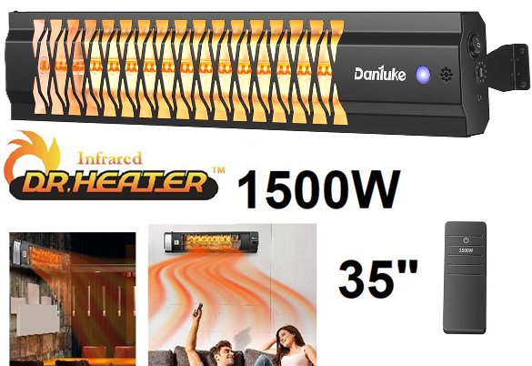 thermomate Outdoor Waterproof Infrared patio Heater with Carbon Fiber Tube - 1500W - BLACK - (model: EIHFW1500B)