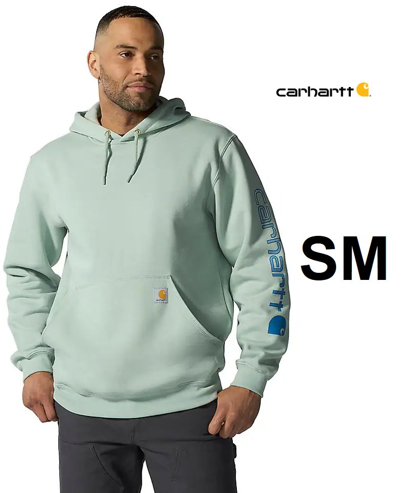 Men's CarHartt Loose Midweight Fit Logo Sleeve Graphic Hoodie - small- teal - (model: ts0288-m)