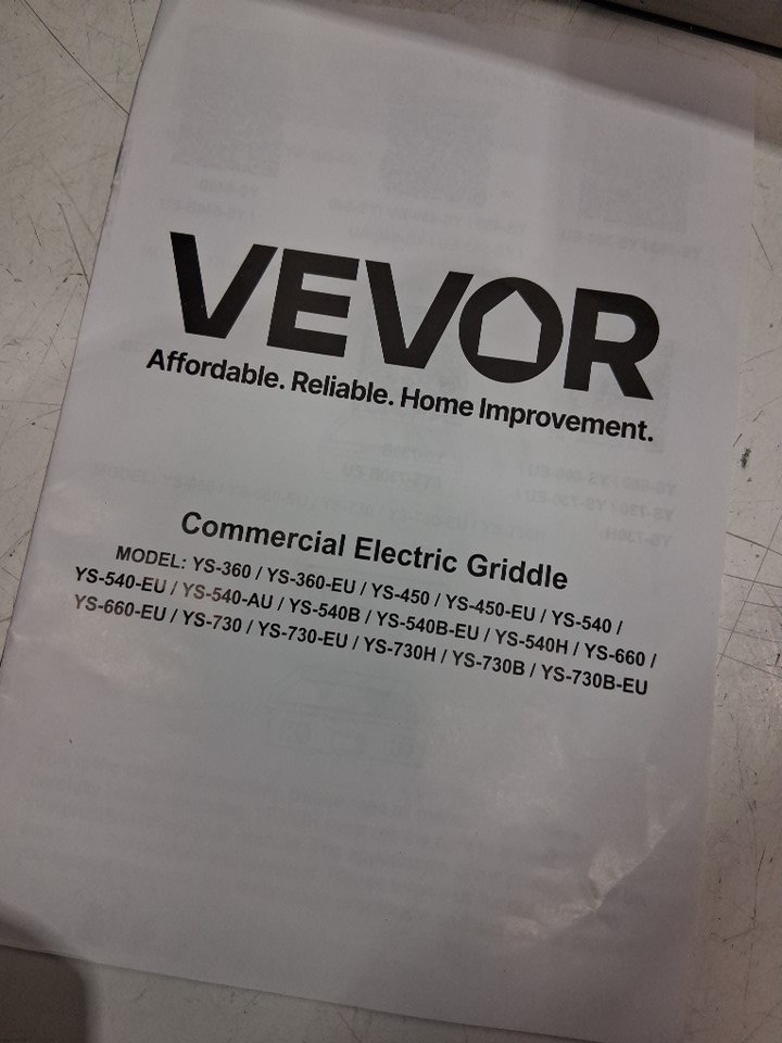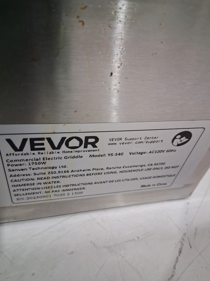 VEVOR Commercial Electric Griddle WITH Adjustable Temp Control, 2 Spatulas, 2 Brushes - 1750W - 21" x 11.8" - SILVER - (MODEL:YS-540)