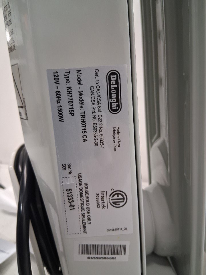 delonghi Full Room Radiant portable space Heater - 1500w - white (model: trh0715ca)