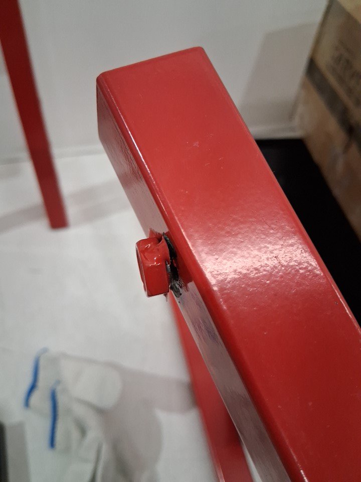 Please note that 2/3 welds on one of the screw holes is broken and there are scratches on the shovel/frame indicating previous use (see photos)