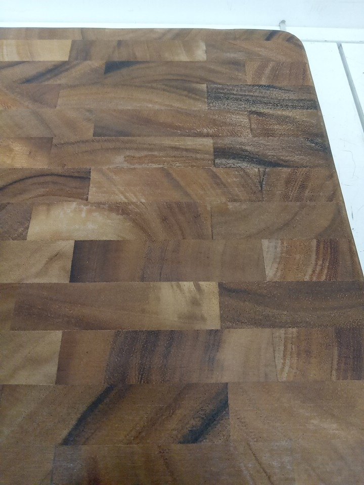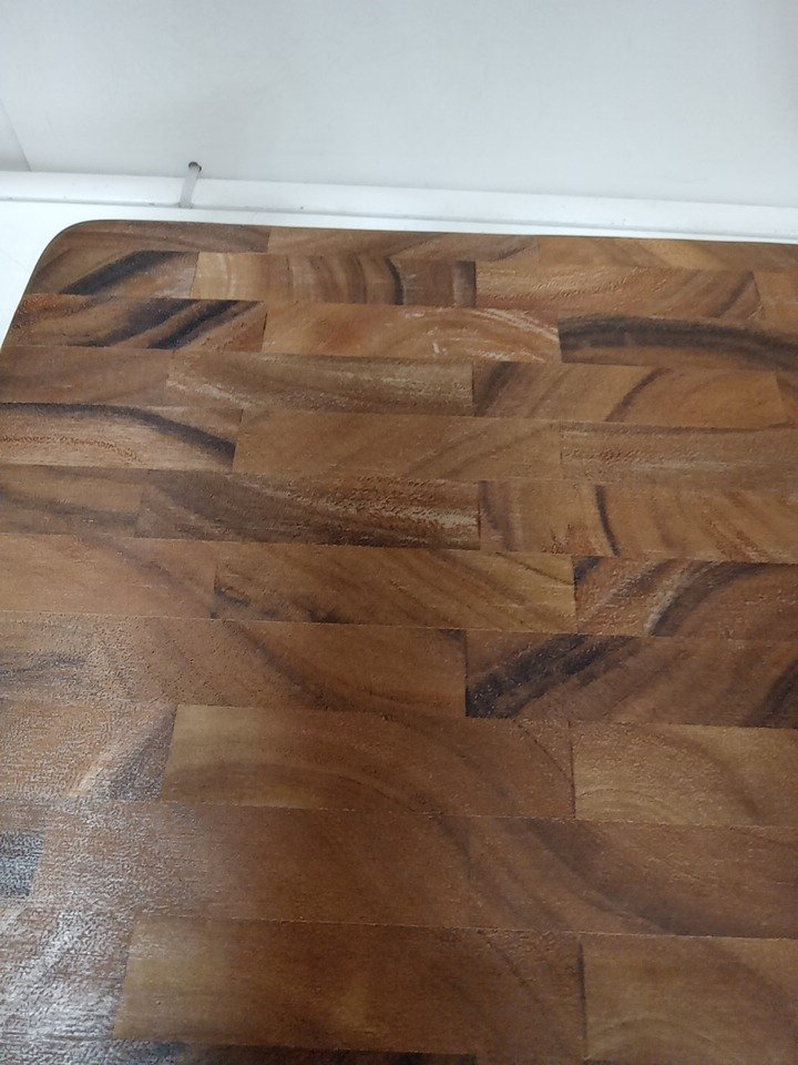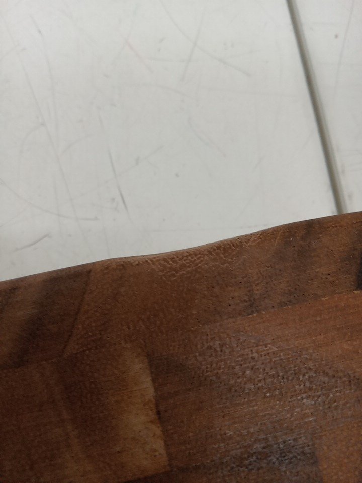 Small indent on the one edge, some fading marks on the board from previous use, can likely be restored with mineral/citrus oil.