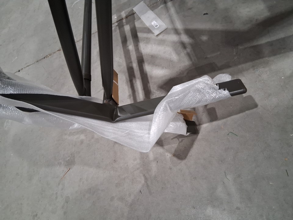 one of the legs is dented and some scratches on the bottom due to no packaging
