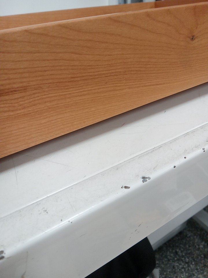** WOOD LOOKS LIKE ITS EXPANDING FROM TEMP CHANGE, CRACKED ON THE BOTTOM - DOESNT SIT FLUSH ** *GENERIC CONDITION STATEMENT* This item has been handled/inspected, tested if needed by our listing staff to the best of their ability/knowledge and for an unknown reason arrived to our facility with an issue. This issue can either be a very minor/major cosmetic issue which most likely occurred during shipping such as a dent, indent, scuff, stain, scratch or knick. If not a cosmetic issue, it can be a function issue with the item itself or there could be certain parts missing to make the item complete from how it is sold originally. (See lister notes and photos attached of the issue stated as well as packaging condition)