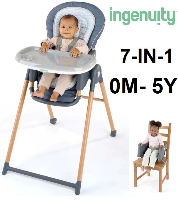 ingenuity 7-in-1 Proper Positioner High Chair - 0-5Y months - chambray (model: 16869)