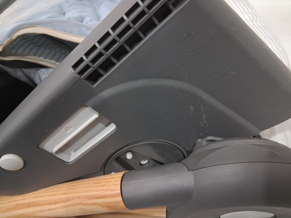 there is scuffs and marks on the item as well as some dirt and food residue on the side.