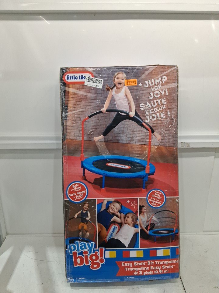 LITTLE TIKES Play Big EASY-STORE KIDS TRAMPOLINE - 3FT - MAX WEIGHT 55LBS - BLUE/MULTICOLOUR (MODEL: 642265PC)