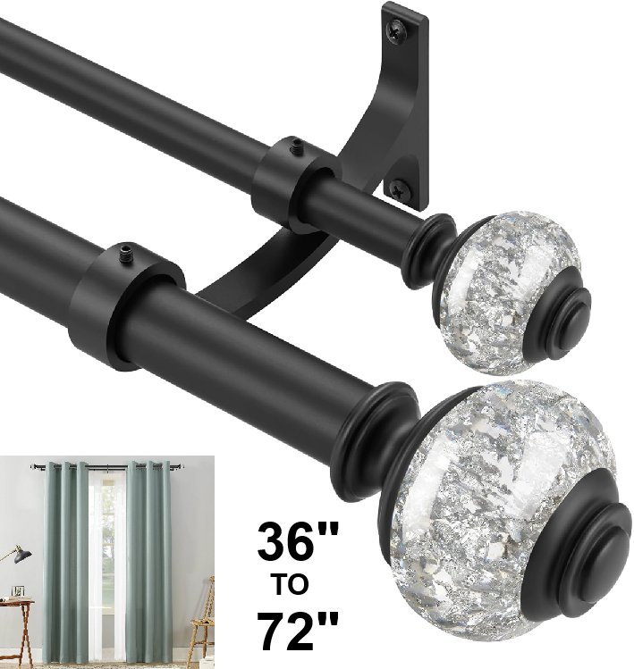 VIMAYTA Double Curtain Rods with Solid Aluminum Alloy Brackets for living room - 36-72" - MATTE Black - (Model: ds-a281)