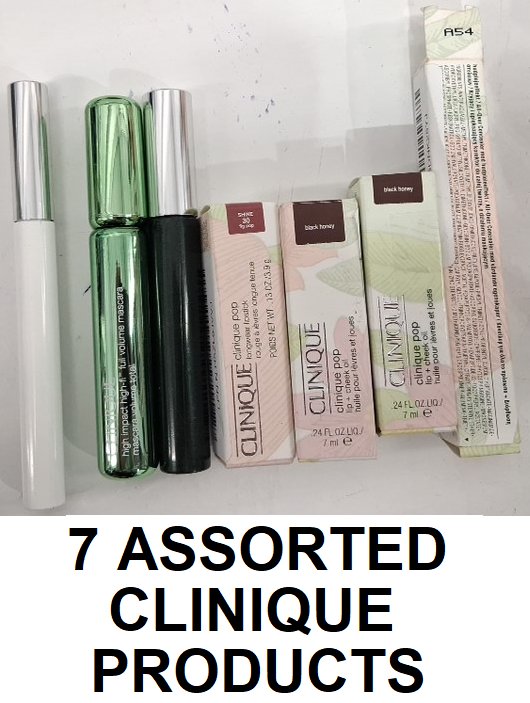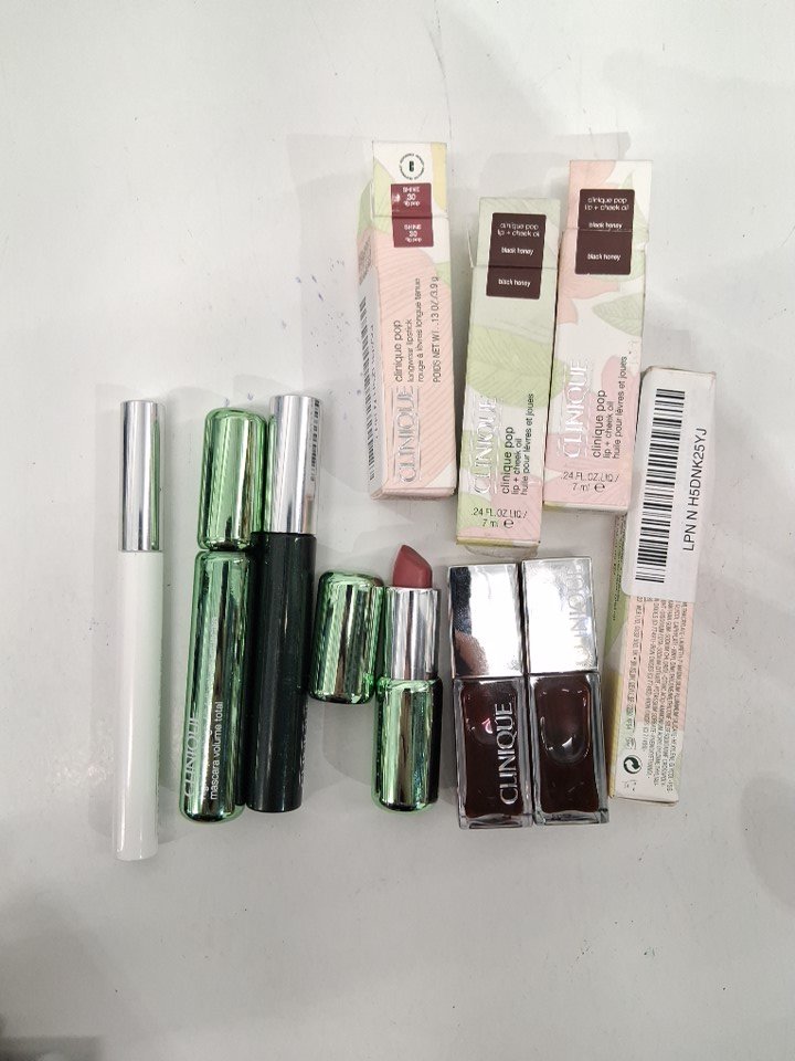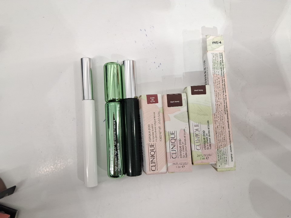 7 assorted clinique makeup products - assorted colours/shades - mascara / lash primer / lip + cheek oil