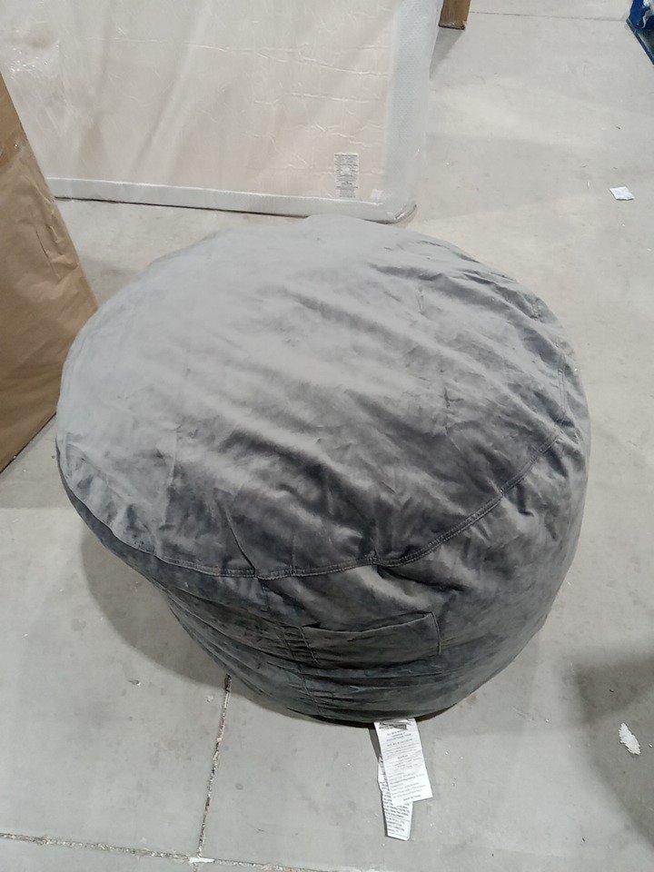 large round velvet bean bag for living room / bedroom - 36" x 36" x 22" - grey