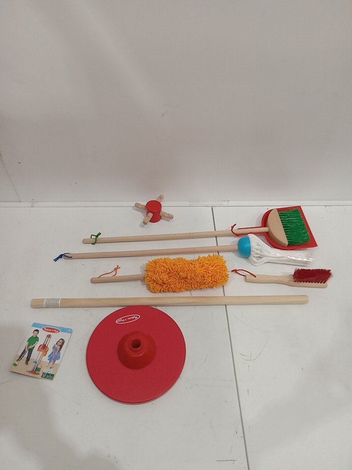 6PC MELISSA & DOUG LET’S PLAY HOUSE! DUST! SWEEP! MOP! PRETEND PLAY SET - KID-SIZED With BROOM, MOP, DUSTER, BRUSH, DUSTPAN, STORAGE STAND - MULTICOLOUR (MODEL: 96049)