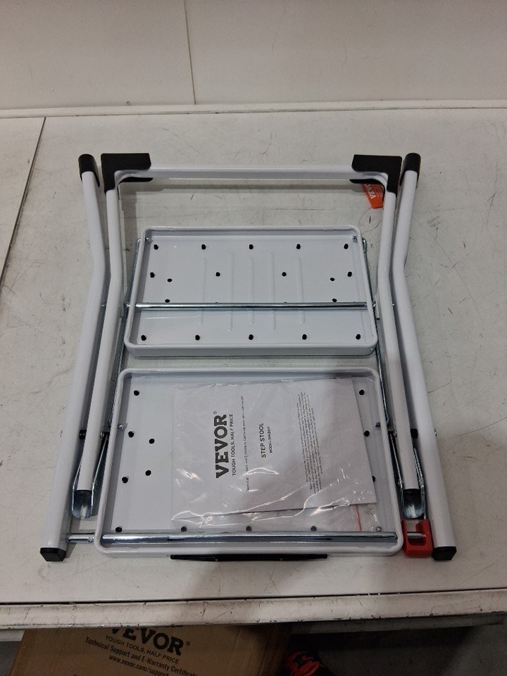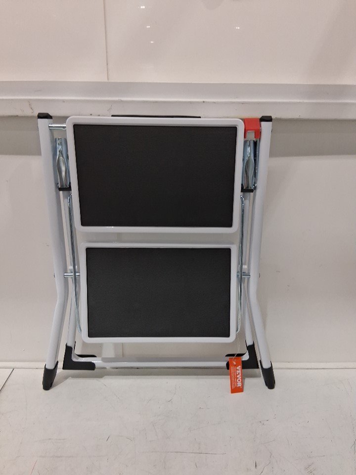 Ergonomic Folding Steel Step Stool with Wide Anti-Slip Pedal - 2-Step 330lbs Capacity - black/white (model: wk2031)