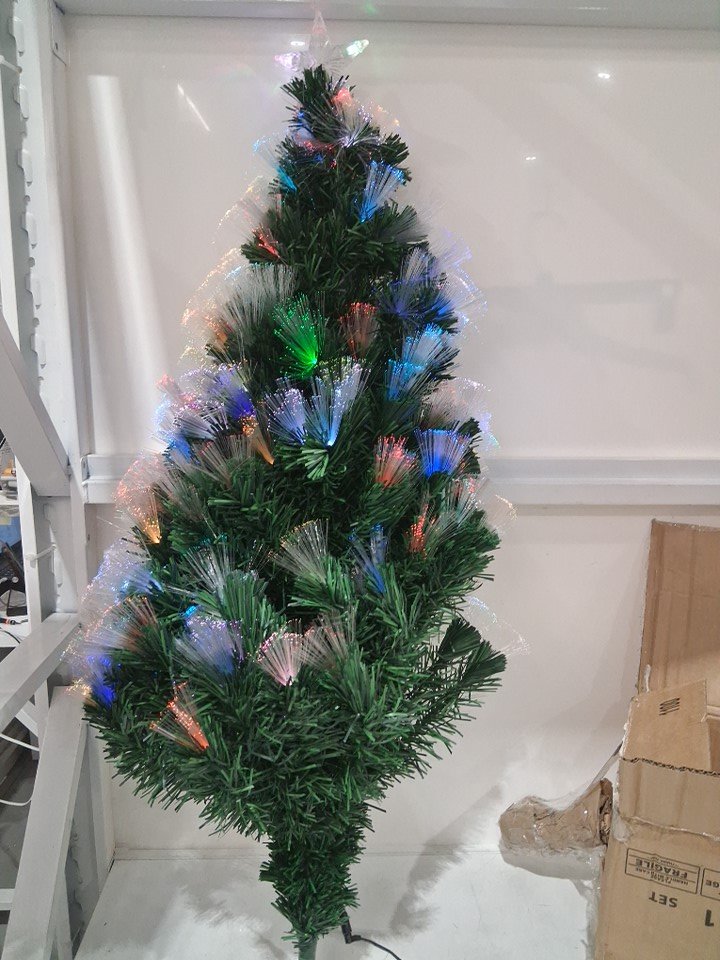 artificial fiber optic Christmas tree with base - 4.5ft - green/multi color