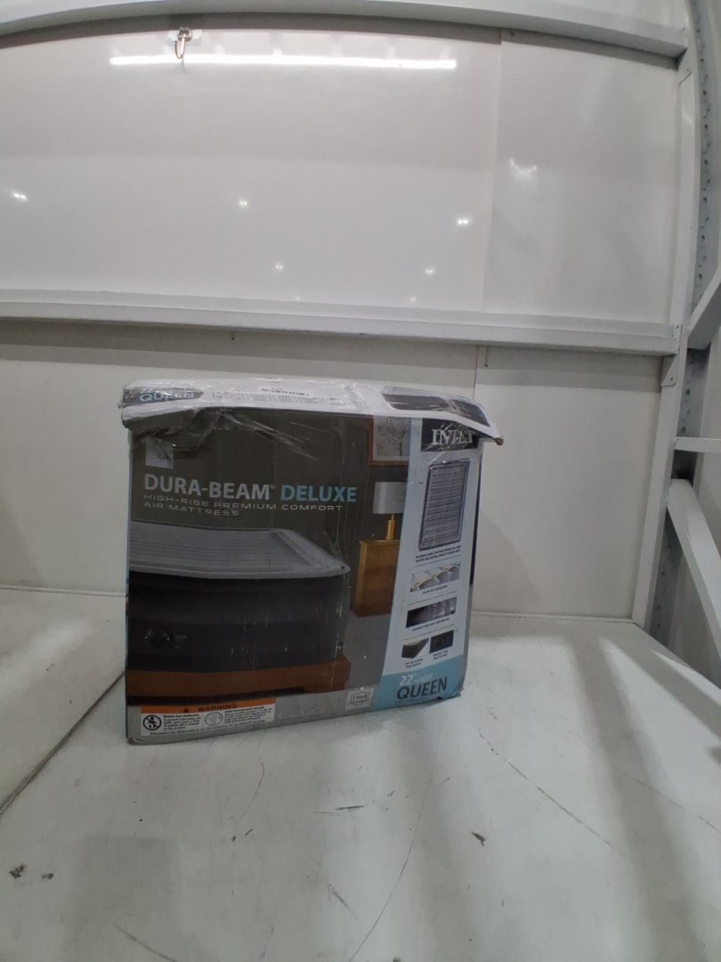 Intex DuraBeam Deluxe Comfort Plush Air Mattress with Built in Electric Pump - QUEEN - 80" x 60" x 22" - grey/dark blue (model: 64417ed)