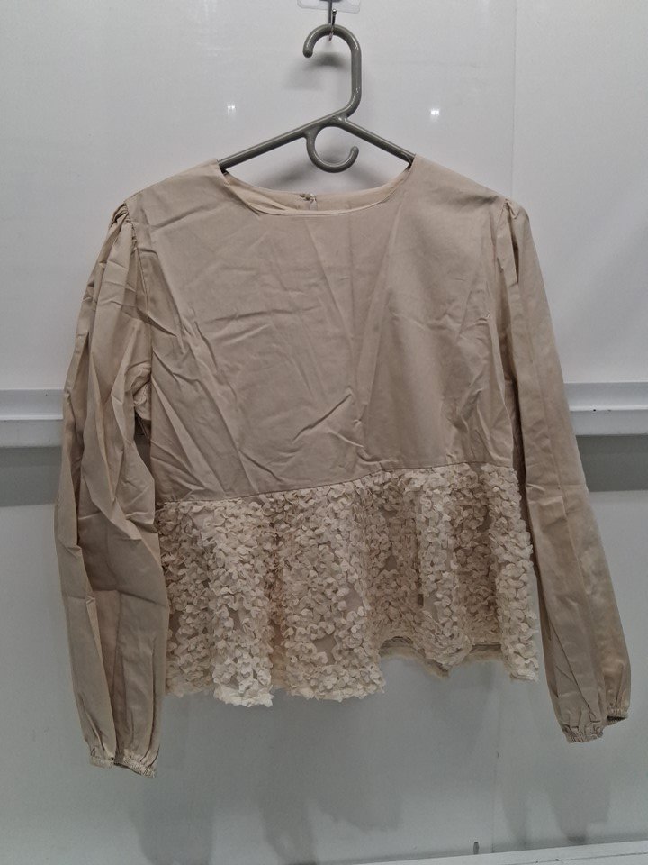 WOMENSLONG SLEEVE BLOOUSE WITH LACE BOTTOM - small - BEIGE