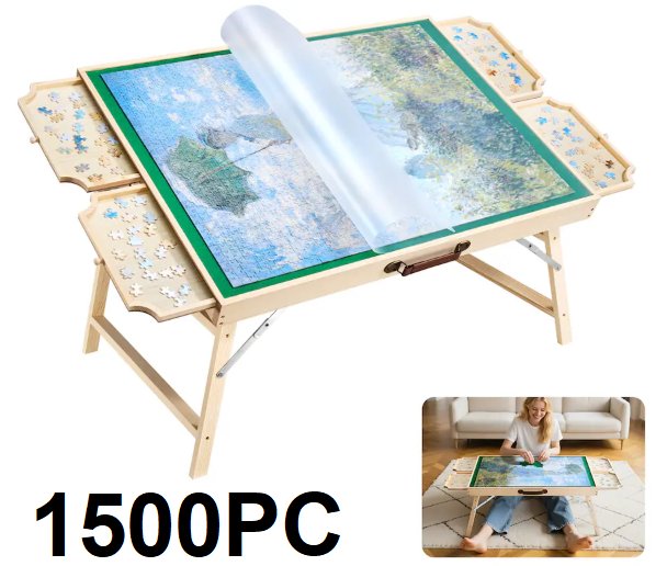 1500PC VEVOR Puzzle Table with Folding Legs, 4 Drawers and Cover - 34" X 25" (MODEL: SJ-07)