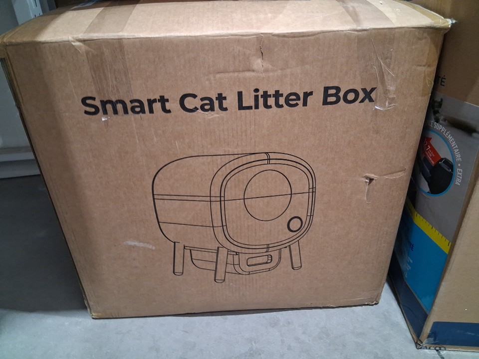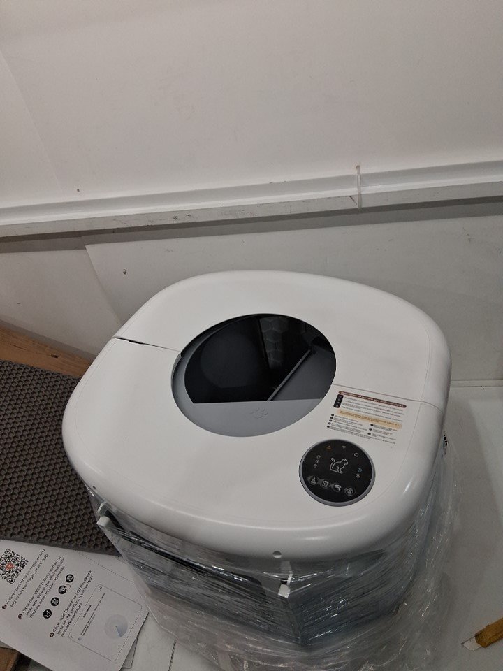 Smart self-cleaning app enabled cat litter box with pullout bag tray/catcher, ambient internal light, automatic/manual modes - 100L - white