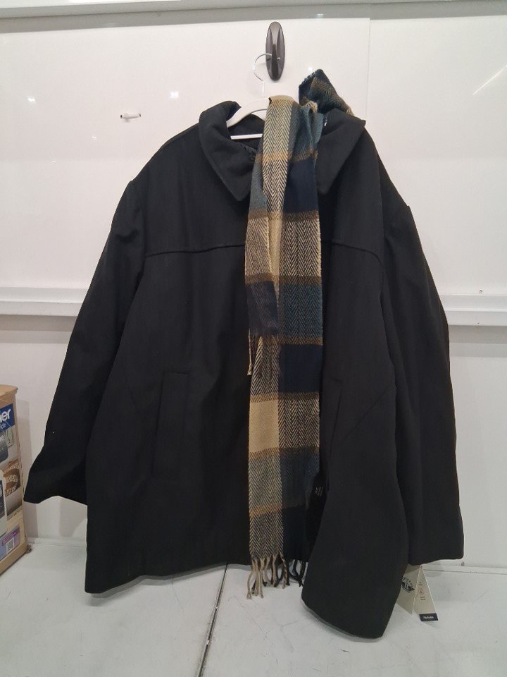 2pc men's Dockers Weston Wool Blend Scarf Coat - 5x - BLACK/NAVY/BROWN (model: DM6RP357)