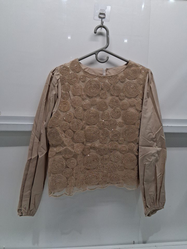 WOMENS embroidered long sleeve blouse - small - BEIGE