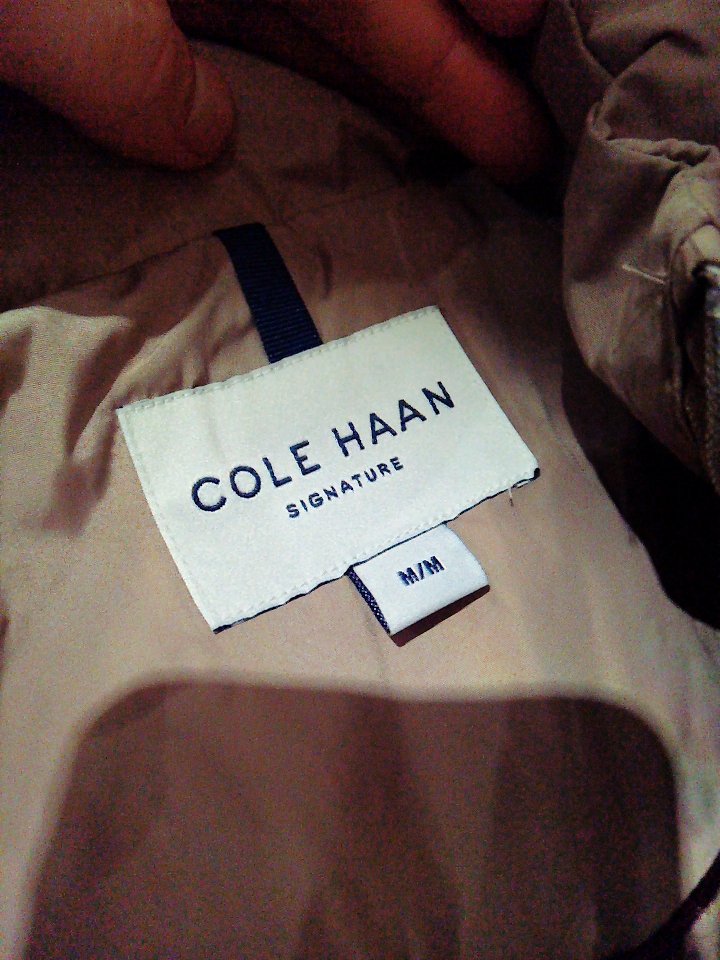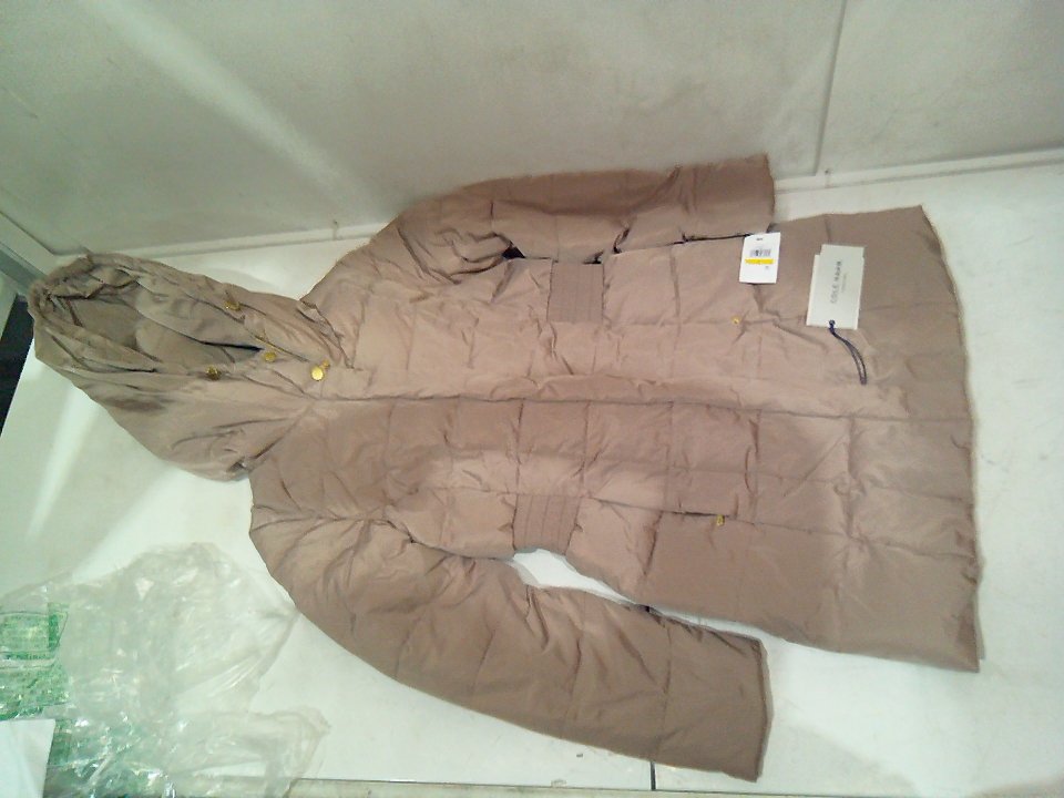 WOMEN'S COLE HAAN DOWN-FILLED COAT - WINTER COAT WITH BIB FRONT AND DRAMATIC HOOD - MEDIUM - CASHEW GREY (MODEL: 356SD931)