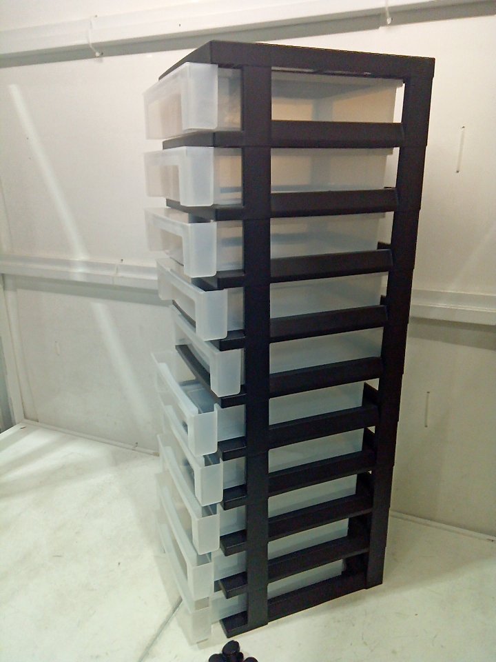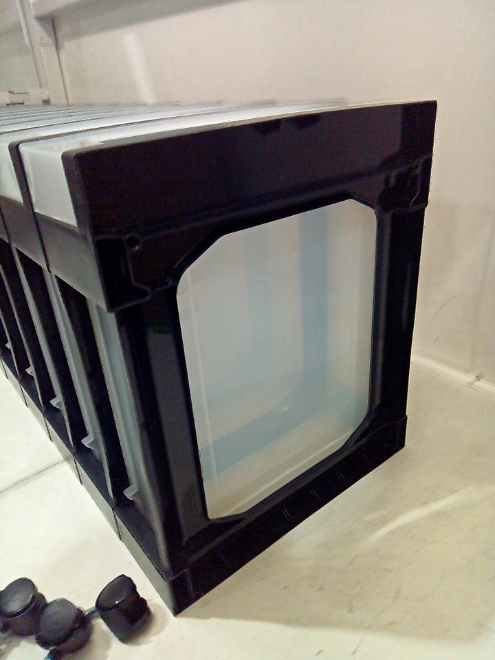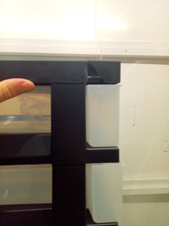 There is a small piece of plastic cracked off of the top of the black frame piece on the side. (SEE PHOTOS