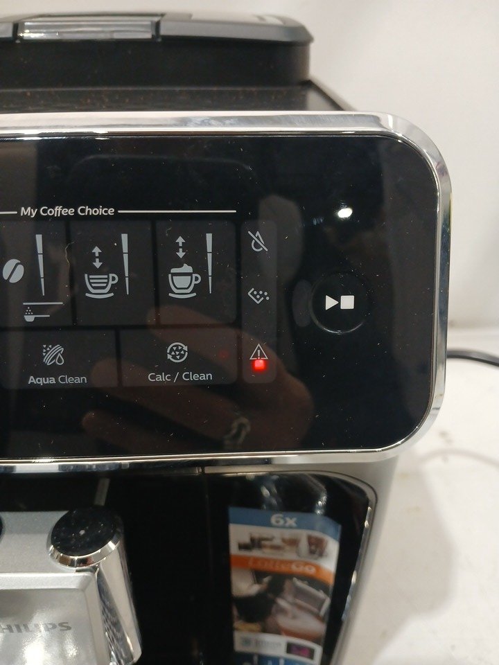 there is coffee/grinds residue & light scuffing/scratching present throughout due to previous use. missing the water filter, test strips, scoop This item will not be eligible for our warranty unless the machine was descaled & cleaned using the manufacturer's instructions. If you require additional time for our warranty in order to clean these machines, please reach out to us before your specified warranty deadline. Due to the high sensitivity and frequent upkeep of operation on these units, additional cleaning may be required. If not descaled with model specific cleaning product, the units may become clogged and will cause potential operational issues. Please refer to the manufacturers operations manual for detailed cleaning instructions.