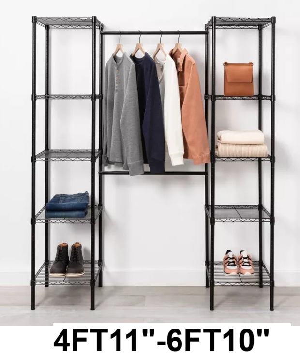 Brightroom Wire Closet System Organizer Kit WITH STEEL FRAME - 4FT11"-6FT10" - BLACK (MODEL: 002 05 8447)