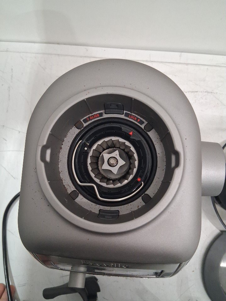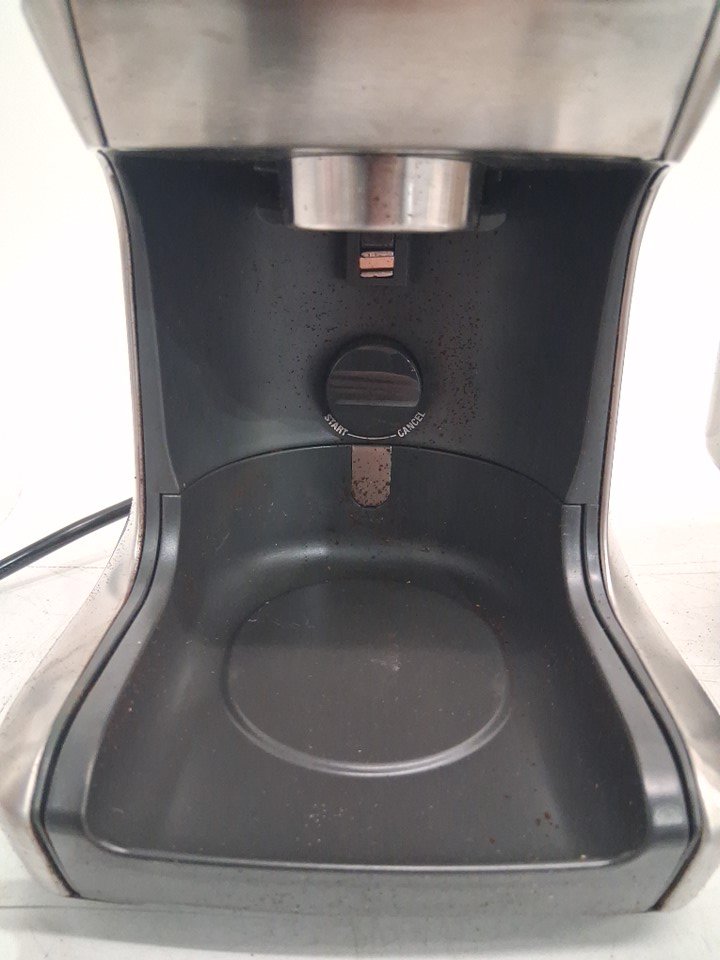 There are coffee grinds on multiple parts of the coffee grinder due to previous use, and *please note that the container used to catch the coffee grinds is not included/missing*. Tested for basic power.