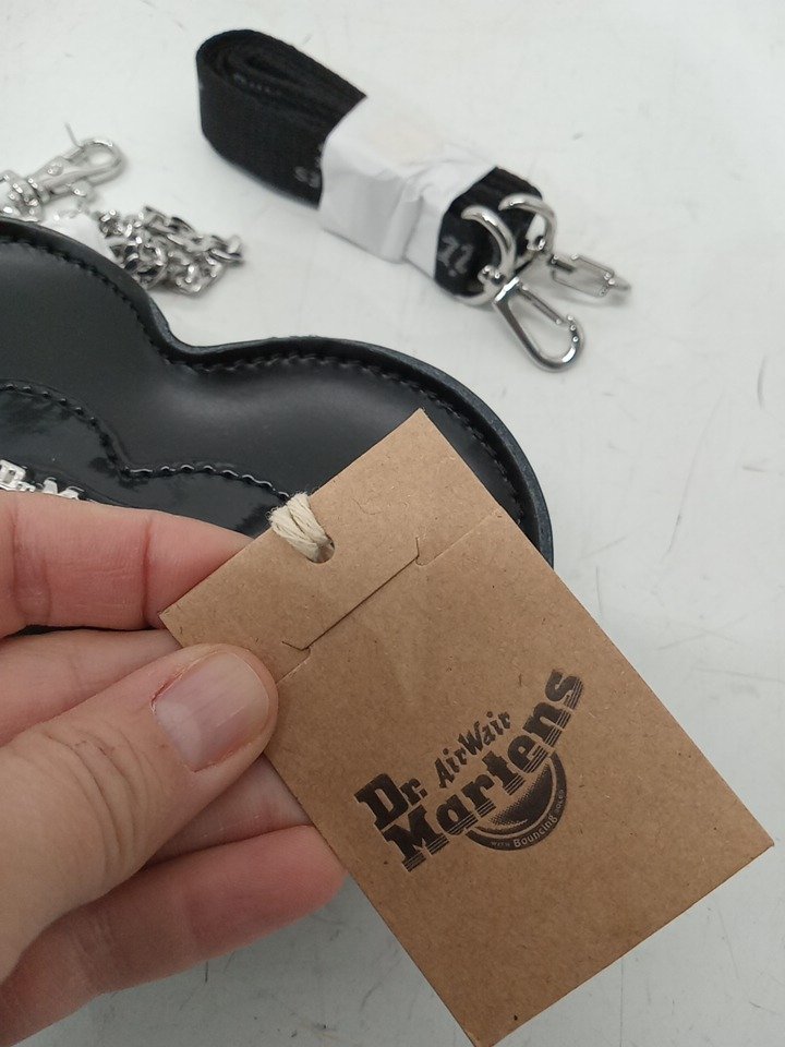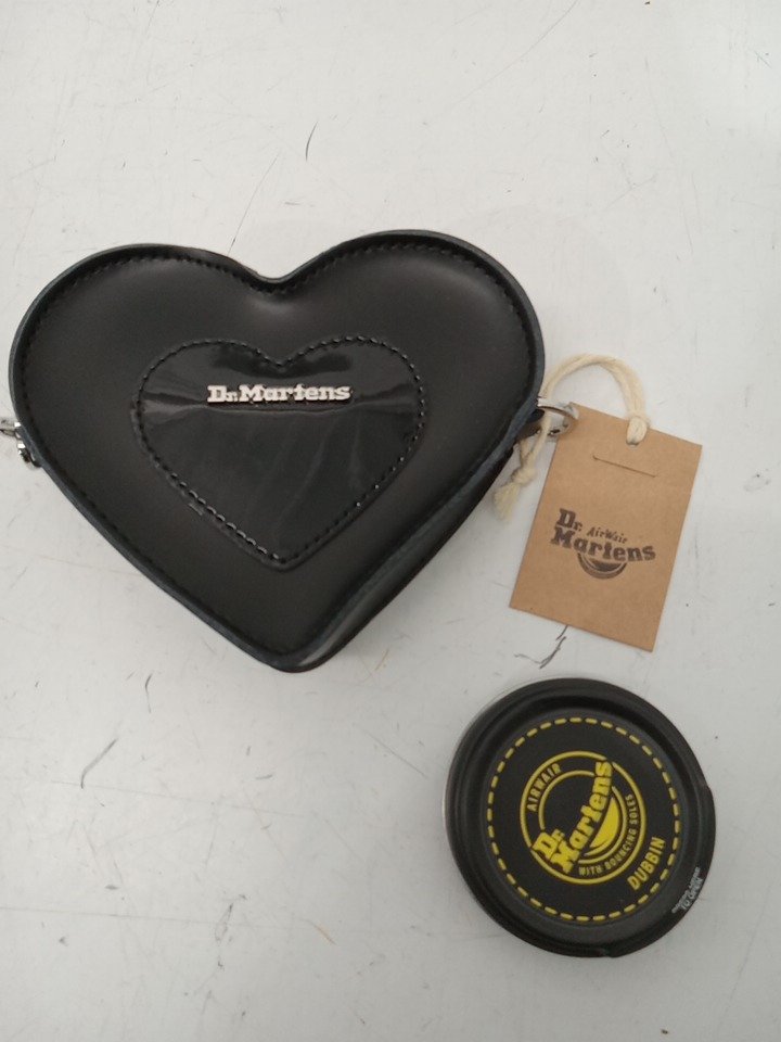 2PC WOMEN'S DR. MARTENS Mini Heart Shaped Kiev & Patent Leather Bag AND Dubbin Shoe Protector - 1.6OZ - BLACK
