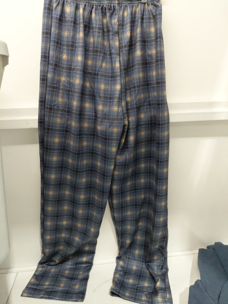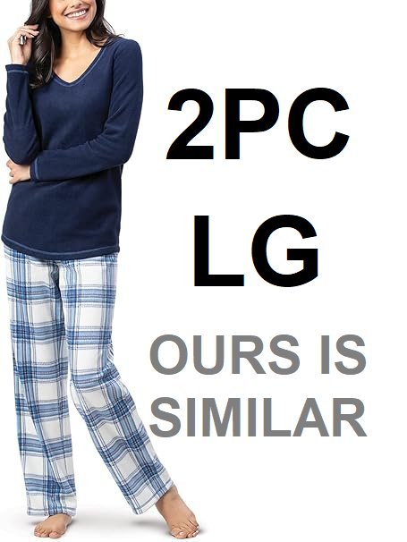 2pc women's swaggy fit fleece lined pajama set - large - blue/plaid
