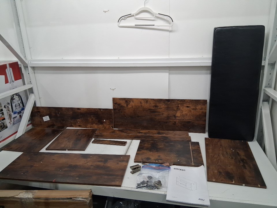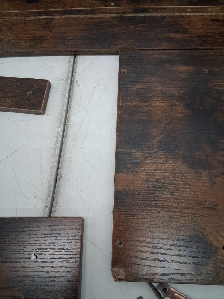Please note this item has damage from previous assembly. There are multiple markings on the product from previous use. Additional generic hardware may be required for assembly