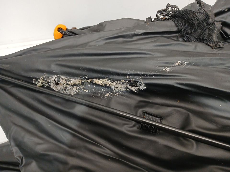 upon inspection there is a rip in the top of the hub, see images.
