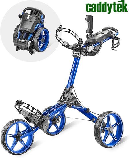 CaddyTek CaddyLite Compact Semi-Auto Folding and Unfolding Golf Push Cart - BLUE /BLACK ( MODEL:CP-CO-BLU)