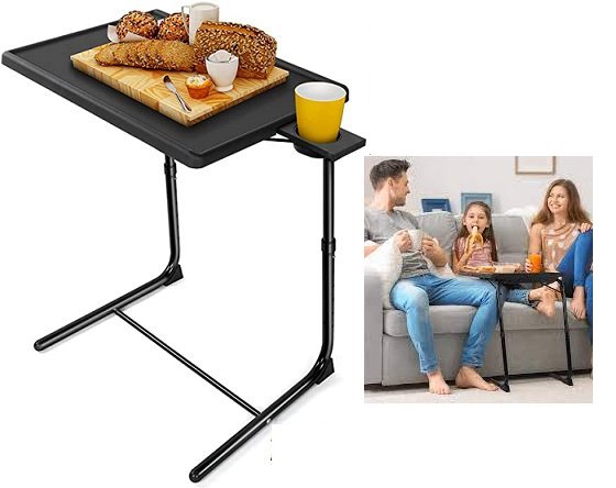 Adjustable folding tv tray table - 15.51" x 20.39"x 27.99"- black