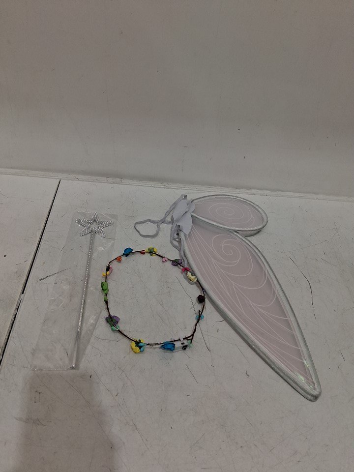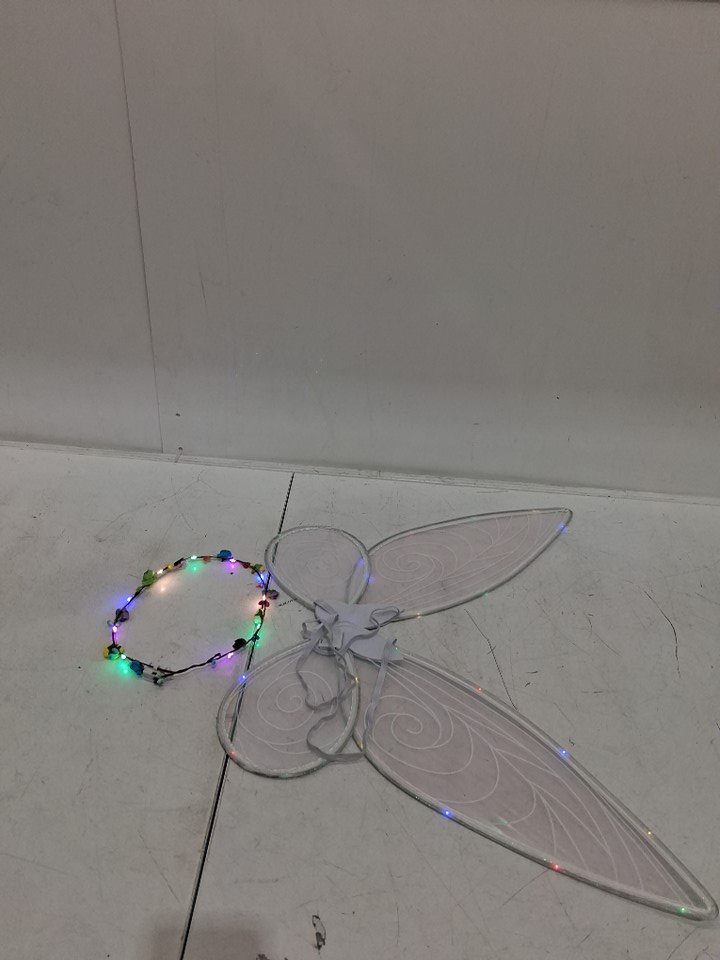 3PC LED FAIRY WINGS SET WITH WAND AND WREATH HANDBAND - OSFM - WHITE/SILVER