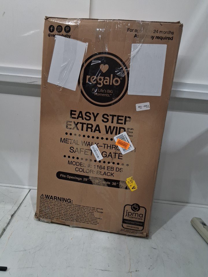 REGALO EASY STEP EXTRA WIDE METAL SAFETY GATE - 30" x 29" - 49" - BLACK (MODEL: 1164EBDS)
