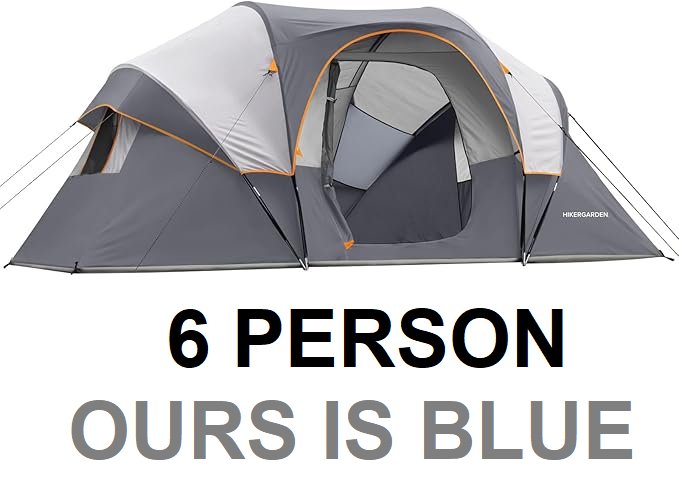 HIKERGARDEN 6 PERSON FAMILY dome TENT - 14ft x 11ft x 74" - blue/grey (model: ‎HG-141174)