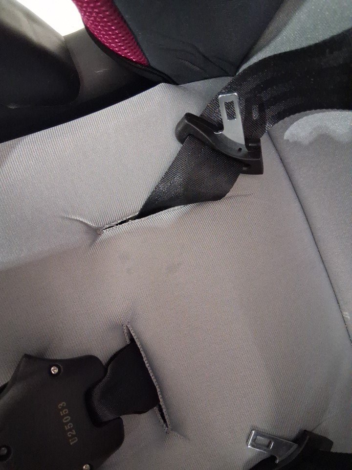There are a couple very minor stains on the booster seat part of the seat from previous use. (Hard to tell on camera)