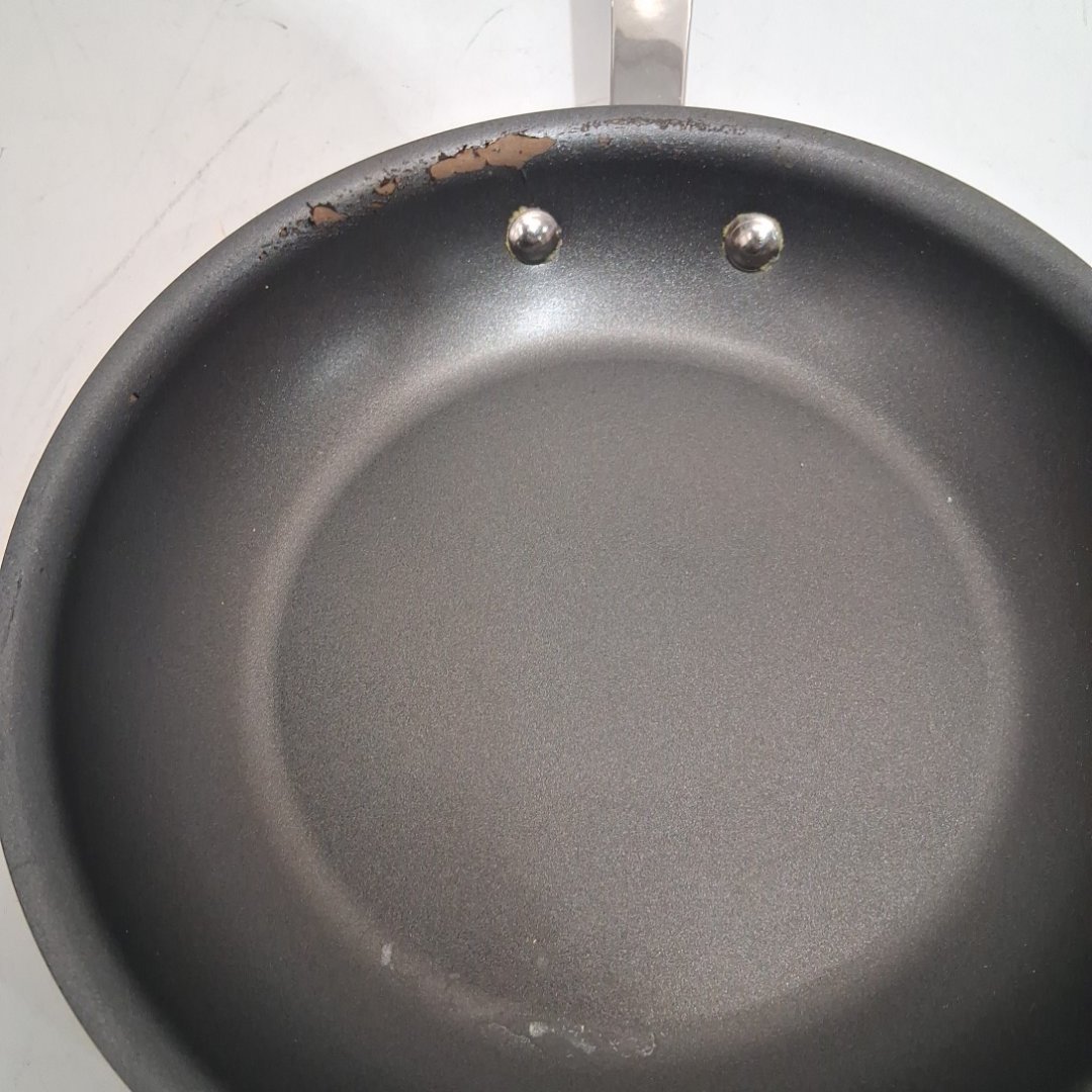 There is some peeling starting on the pan near the handle.