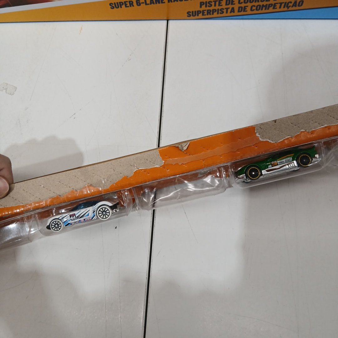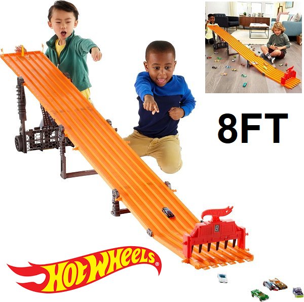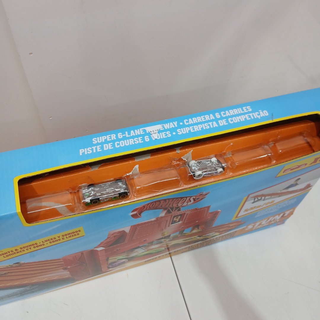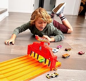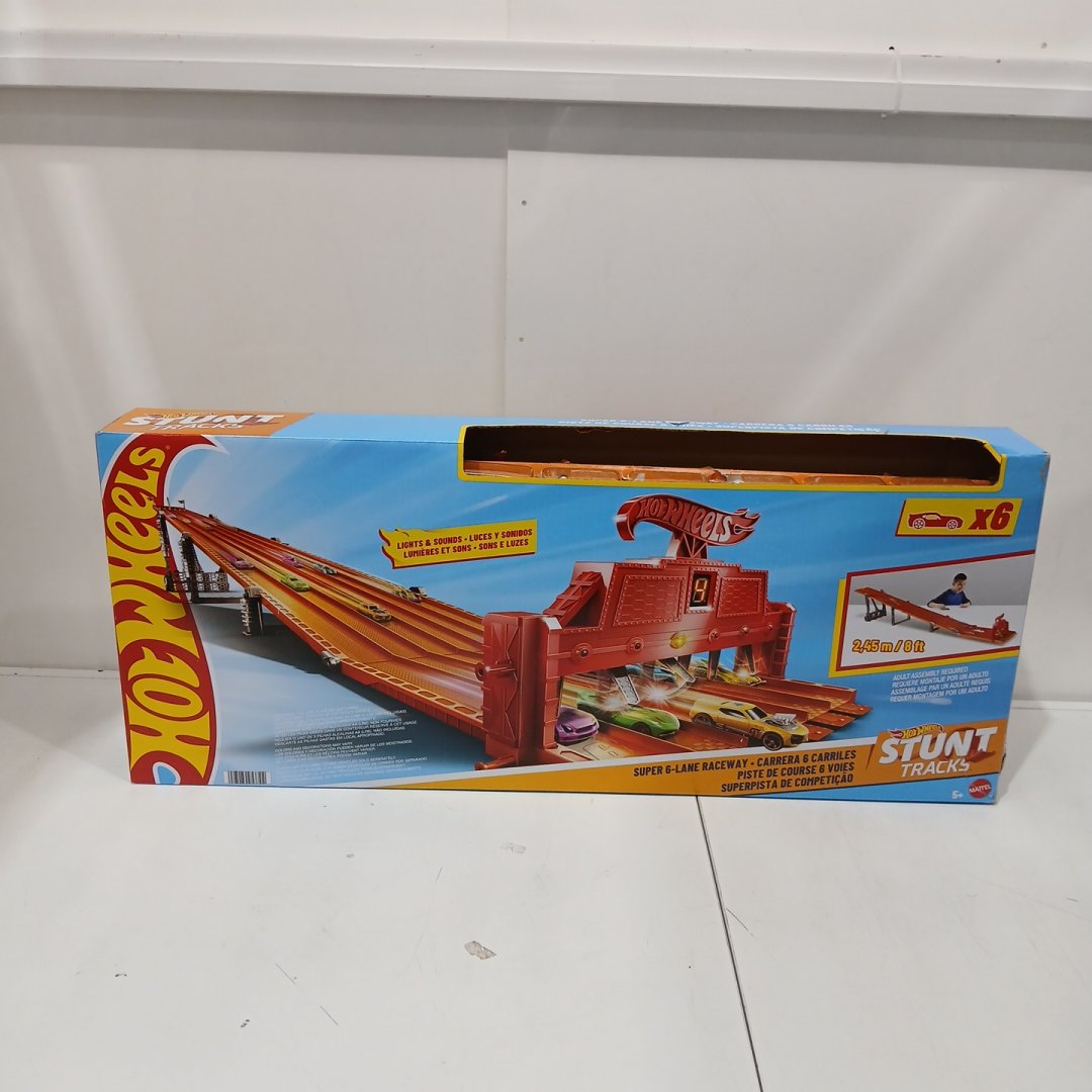 Hot Wheels Super 6-Lane Raceway Toy Car Playset with Lights, Sounds & 6 Vehicles - 1:64 - 8FT TRACK - orange (model: v1983)