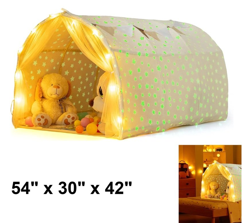 INFANS Glow in The Dark Portable Kids Bed Tent with plush star mat and star lights - 54" x 30" x 42"