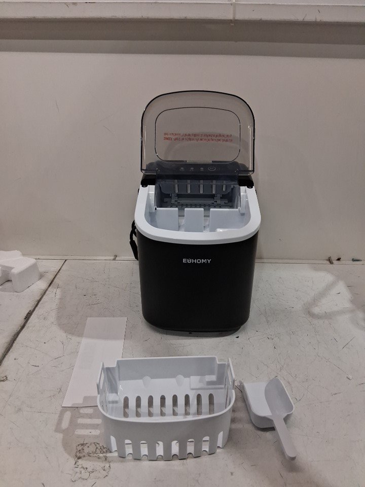 EUHOMY Countertop Ice Maker Machine with Handle Basket and Scoop - MAKES 26LBS Per Day - BLACK - (MODEL:IM001-Bbl-CAEH)